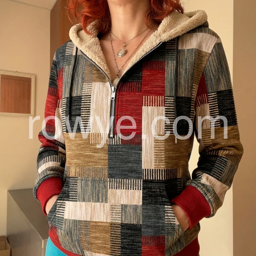 This versatile sweatshirt combines comfort with contemporary style through its distinctive patchwork design. The fleece lining provides warmth and softness against the skin, making it ideal for layering during cooler months. The zip-front closure allows for easy adjustment and ventilation, while the casual silhouette works seamlessly with jeans, joggers, or athleisure wear. Durable construction ensures lasting wear through frequent washing and everyday use. Perfect for weekend outings, casual work environments, or relaxed social gatherings.