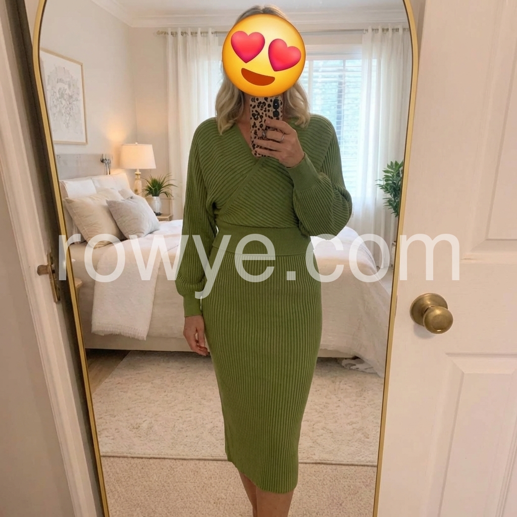 Upgrade your winter wardrobe with our Green Long Sleeve Plain Midi Sweater Dress. The stylish midi length and comfortable long sleeves make it perfect for any occasion. Stay warm and fashionable with this versatile piece.