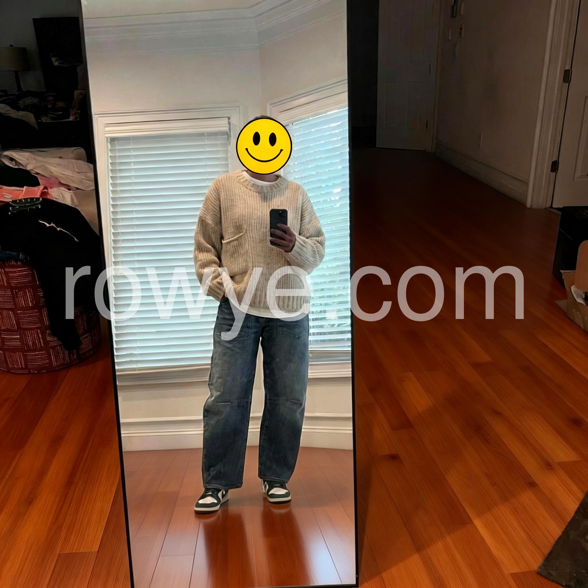 Stay for a super-cozy night inside, or wear this oversized ivory/off-white sweater featuring a front pocket. The capped sleeves, hem, and round collar give this relaxed sweater a slightly fitted silhouette, making it perfect for wearing to the movies, a date, and so much more with its classic look. Machine wash normal with light colors or hand wash. May be hung up to dry or lay flat. Light ironing if needed.